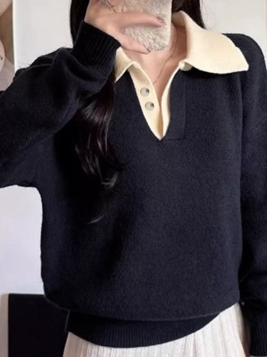 Polo Collar Dropped Shoulder Sweater