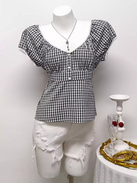 Plaid Short Sleeve Blouse